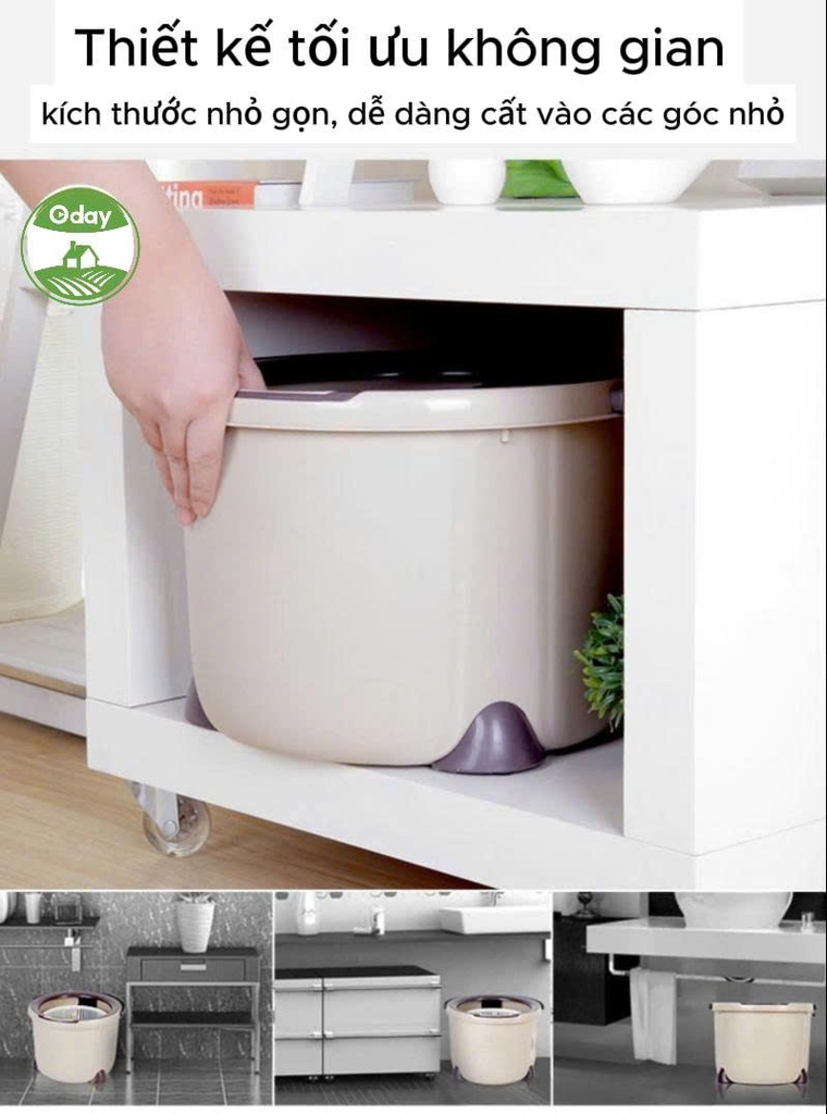 💧 Thùng lau tròn nhỏ gọn, tiết kiệm không gian, cực dễ cất giữ.