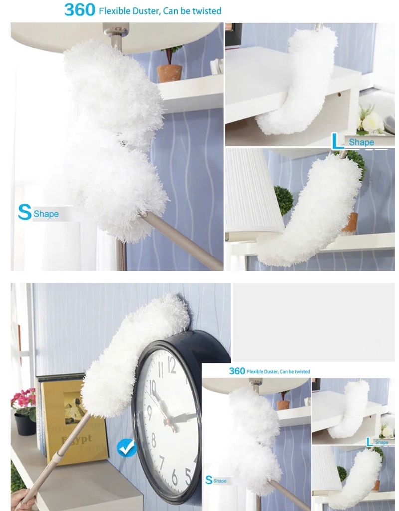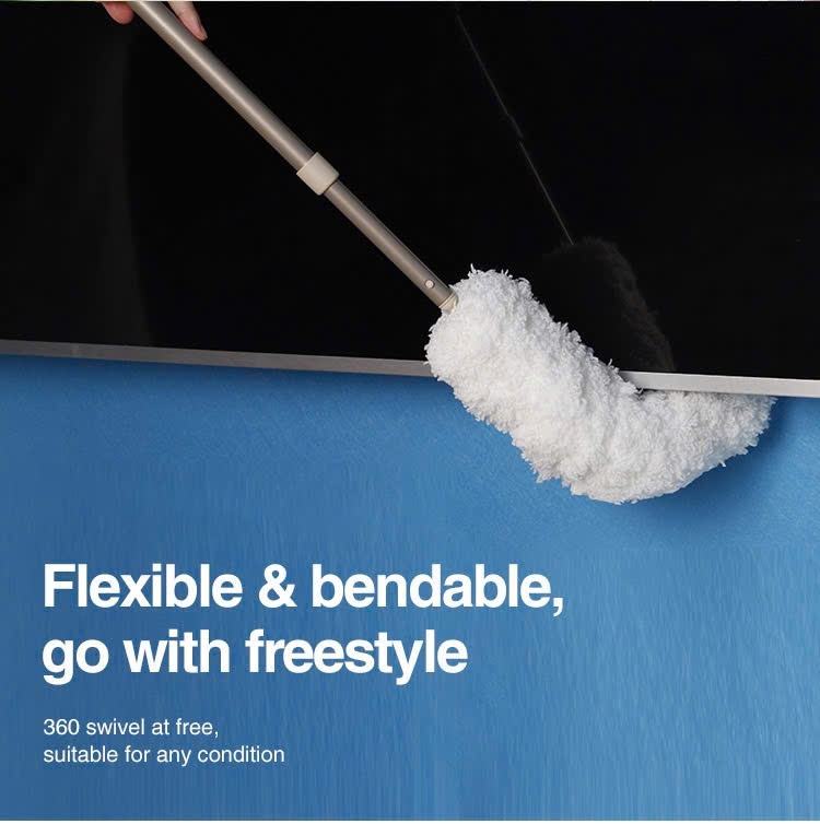 🔹 Đầu bông uốn cong + xoay cố định nhiều hướng – lau sạch cả những vị trí khó tiếp cận